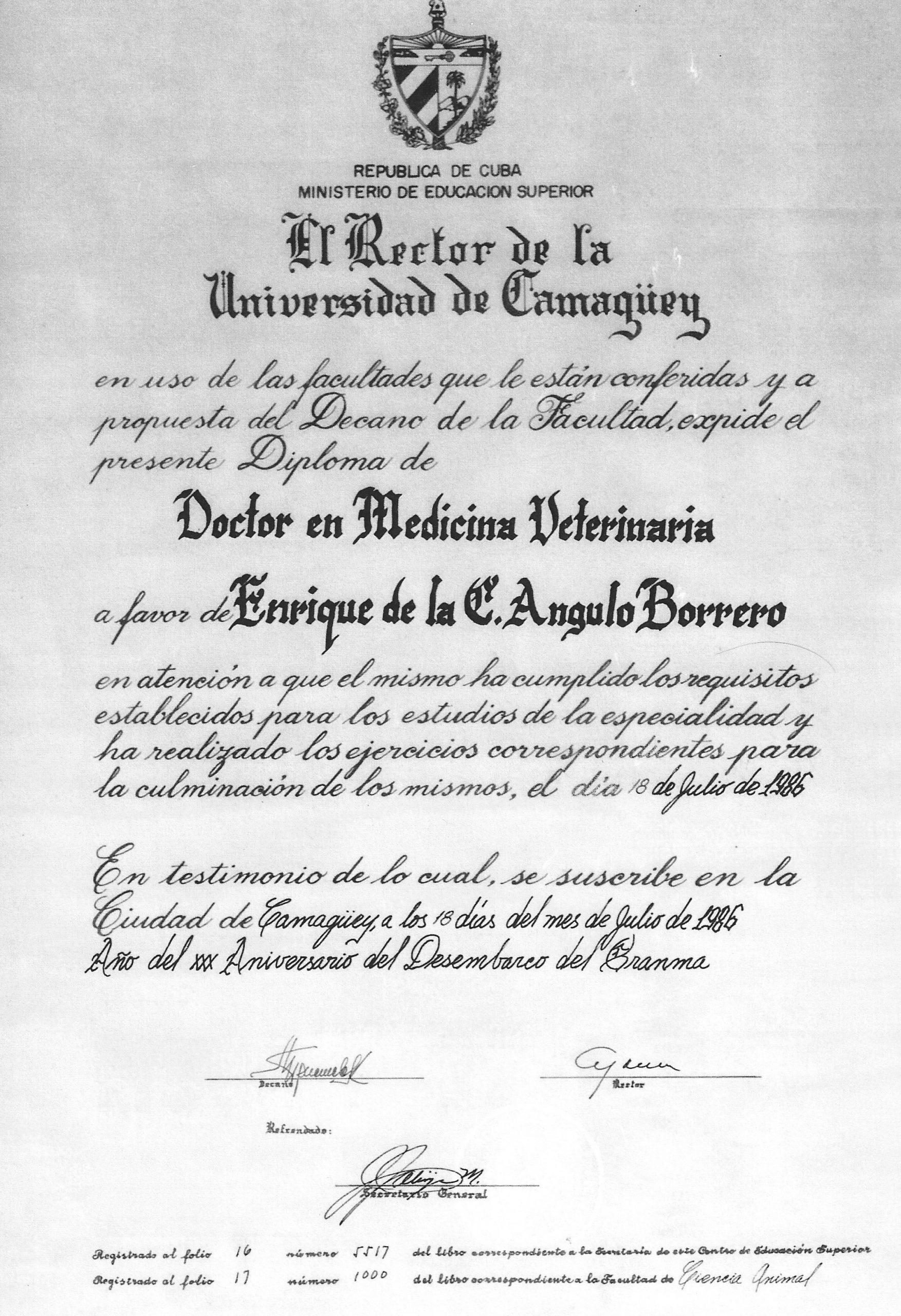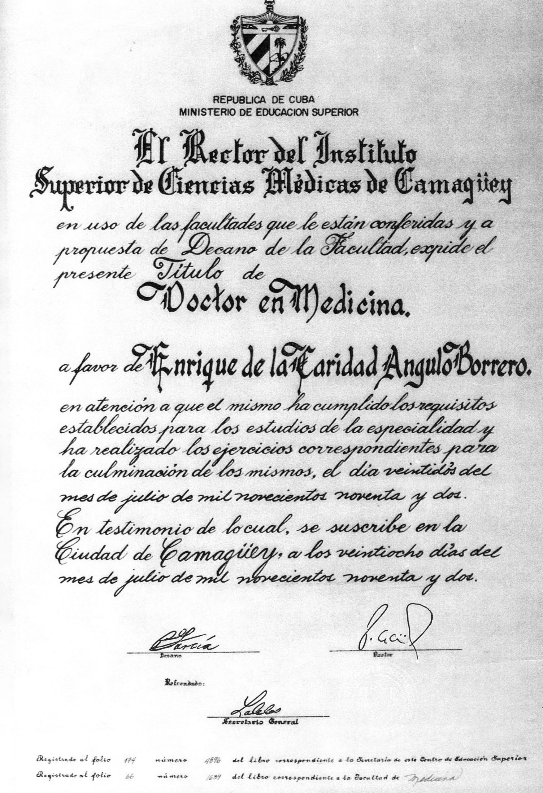 H.E Dr Enrique De La Caridad Angulo Borrero